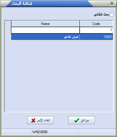 تستخدم شاشة البحث للبحث عن العديد من البيانات و يتم البحث فيها بالكود أو الاسم كما يلي :