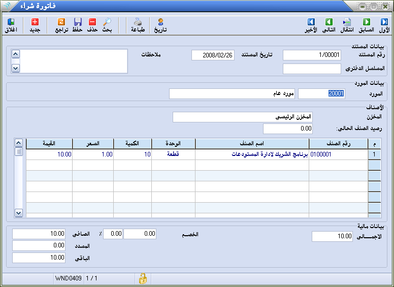 - يمكنك تسجيل الرقم الورقي لفاتورة الشراء في خانة المسلسل الدفتري