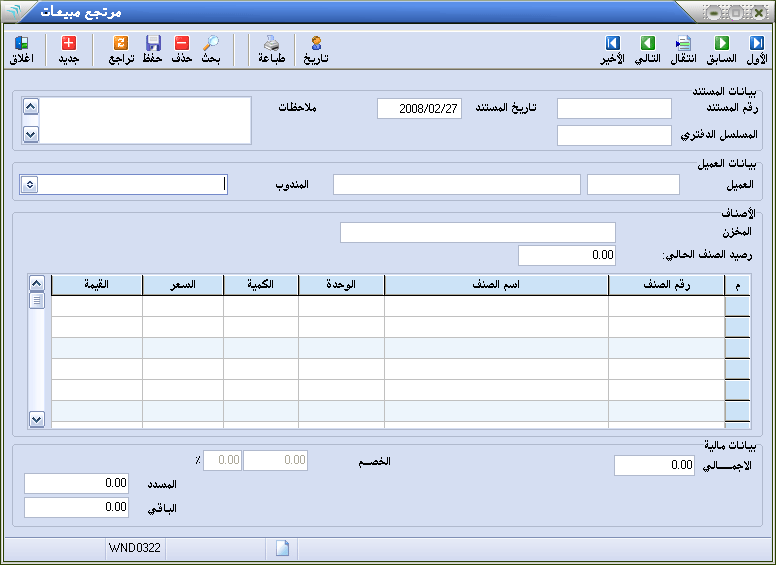 مرتجع المبيعات هي احدى شاشات ادخال البيانات وهي تعد من أقل شاشات البرنامج استخدما فهي تستخدم لتسجيل مرتجعات المبيعات .