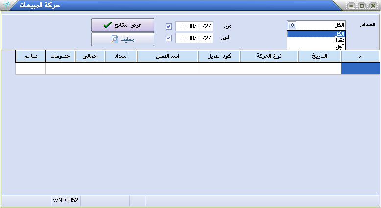 شاشة تقرير تقرير حركة المبيعات هي احدى شاشات التقارير