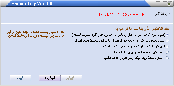 - اذا لم يزودك بائع البرنامج بالرقم المسلسل فلابد من ابلاغه بكود النظام لكي يزودك بكود تنشيط البرنامج