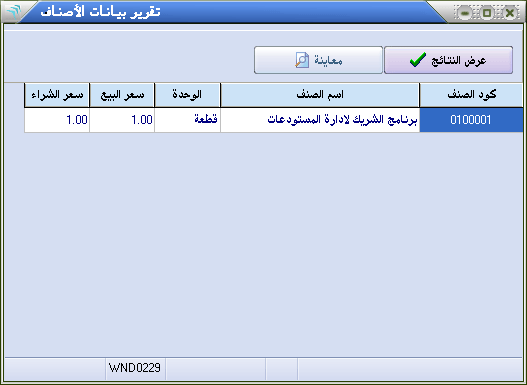 هذا التقرير يتيح لك عرض بيانات الأصناف من كود و اسم و سعر بيع و سعر شراء