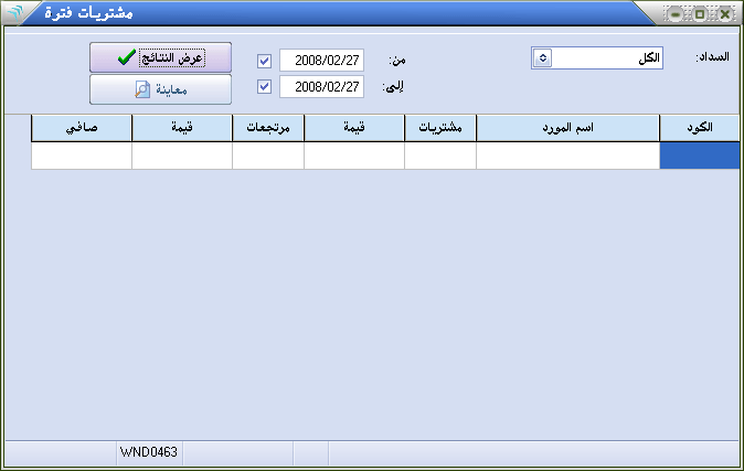 شاشة تقرير مشتريات فترة هي احدى شاشات التقارير